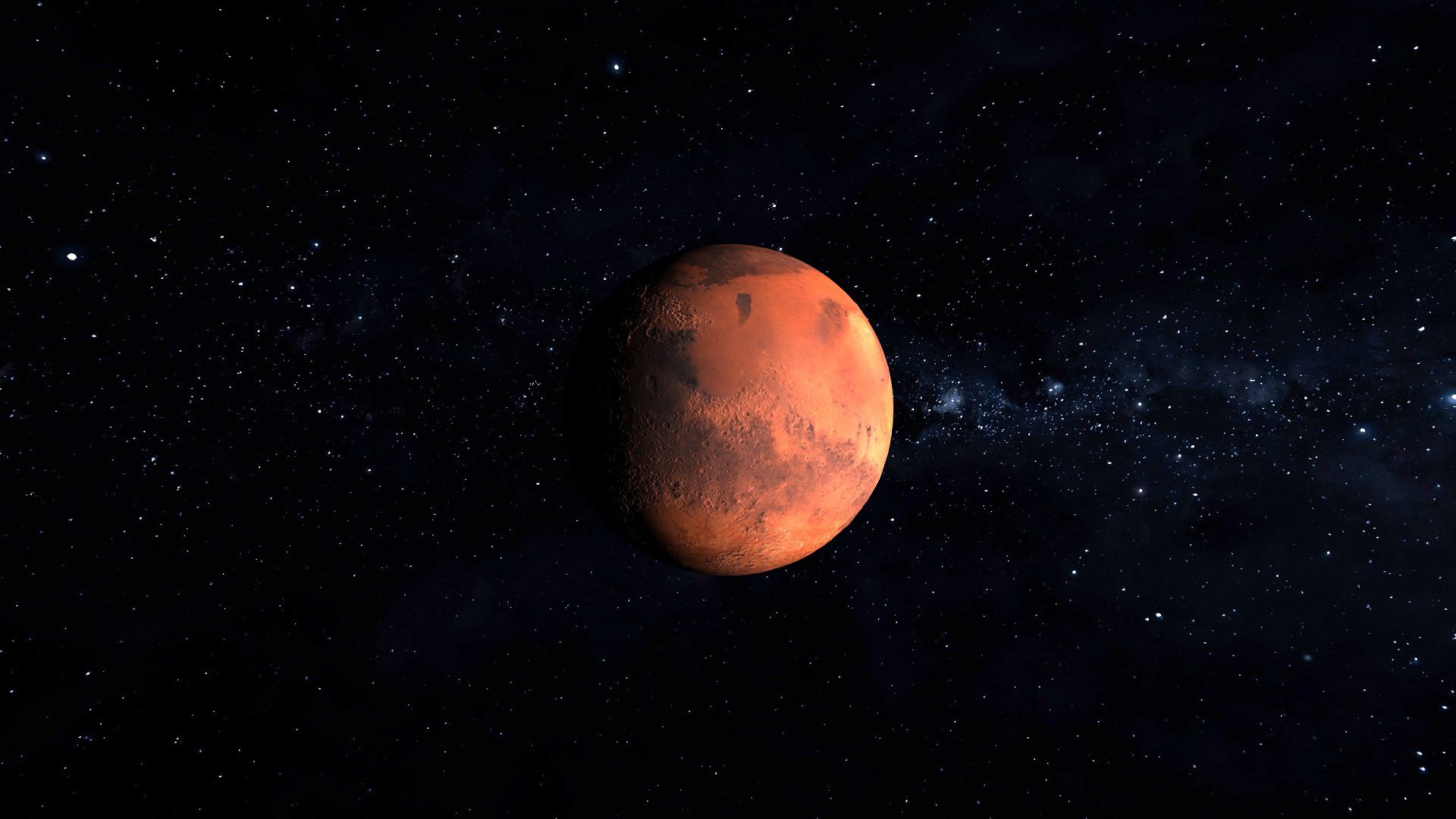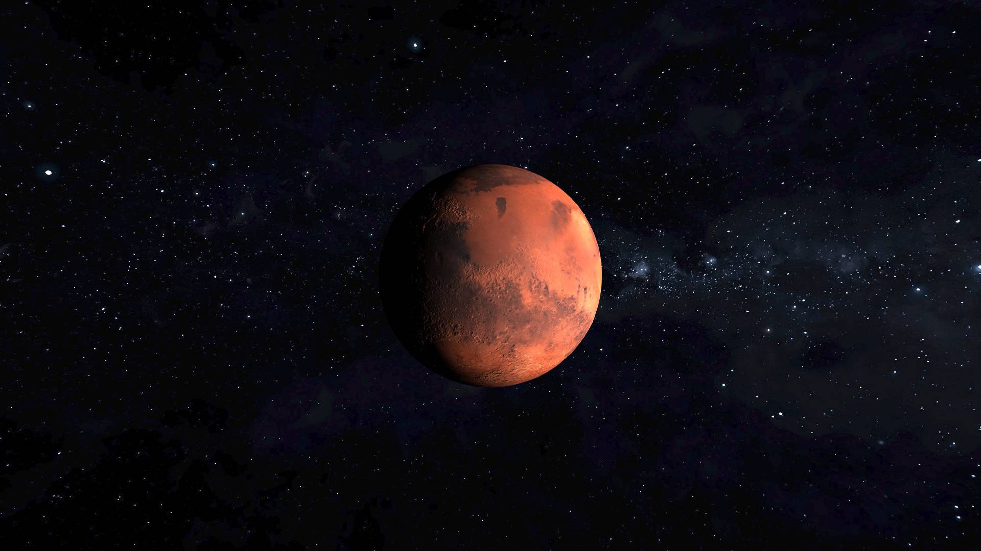 L'arrière plan de la scène est composé de deux éléments: la skybox représentant la Voie Lactée, ainsi que la planète Mars.