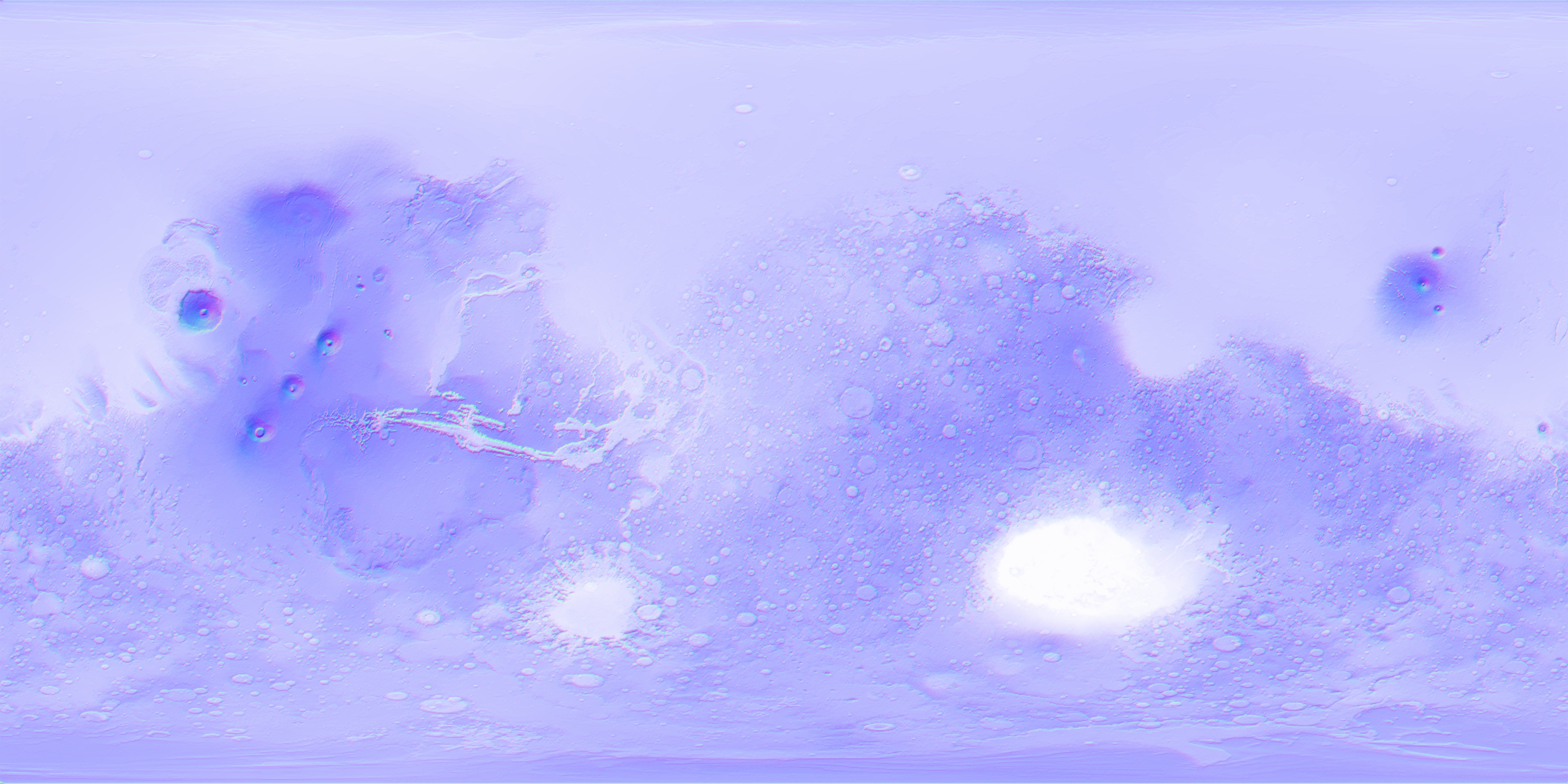 Les "displacement map" et "normal map" ont été créés au moment, à partir de la cartographie d'altitude de Mars, de logiciels de cartographie et de création de normal map, détaillé ci-dessous.